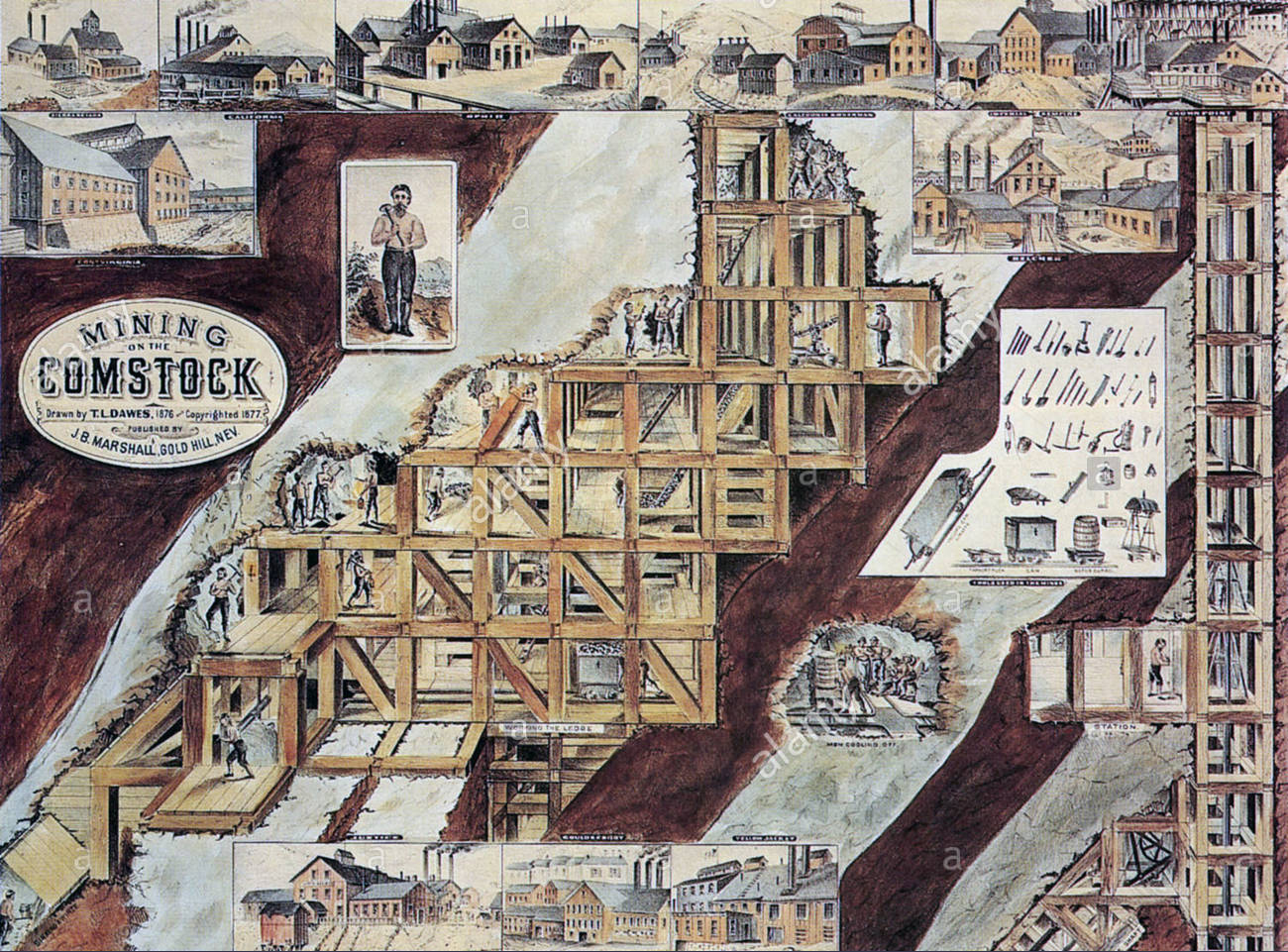 keep an historian busy writing for ten years or more. Mining engineers around the world are taught techniques that were developed here because of the complexity of the ore, the size of the lode itself, and the geology of the Virginia Range.