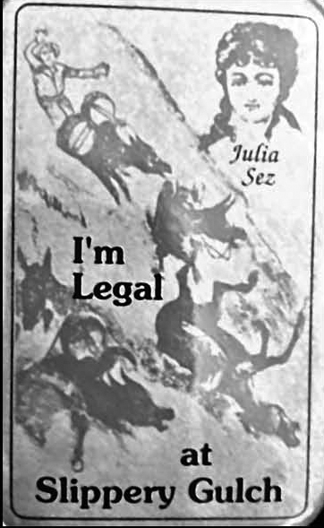 Entrepreneurs and some colorful characters, looking for a more quiet and colorful existence, began to come. Properties slowly began to sell and upgrades began. While more authentic of the old mining towns before this renaissance, new owners took to decorating bars and stores with any type of antiques that the movies had shown as period appropriate. Before the war, the town was crumbling and land was cheap. A few people began to recognize the town’s potential as nearby Reno continued to grow. Still, it was a town of mostly dirt roads with tumbleweeds rolling through with the daily wind. Against this backdrop, a few gents with foresight knew this locale was the perfect setting for the first exclusively-Nevada chapter of E Clampus Vitus. Their dreams carne to fruition on June 1, 1963, when this group was awarded a charter in the name of Julia C. Bulette 1864 Chapter.