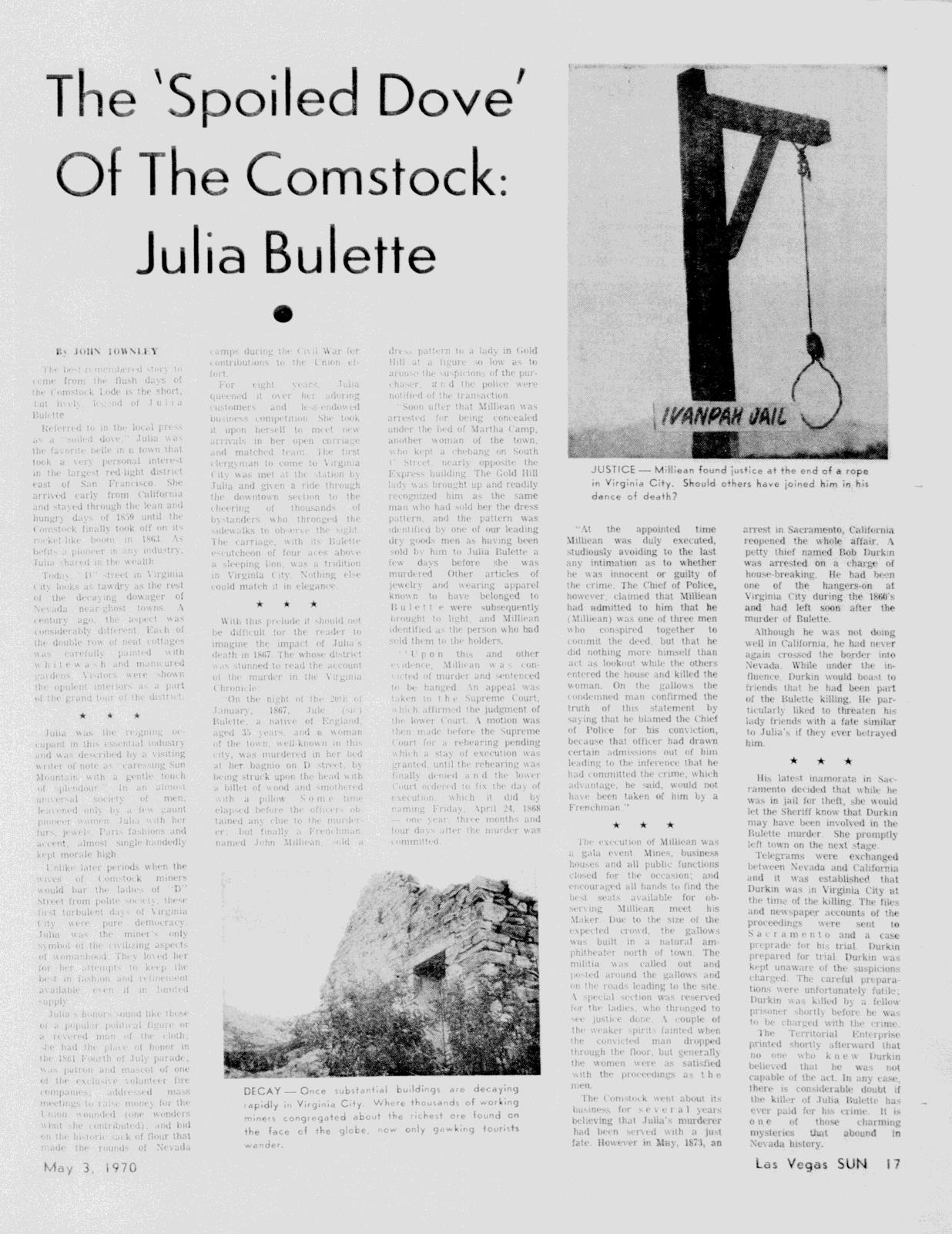 The ‘Spoiled Dove’ of the Comstock: Julia Bulette