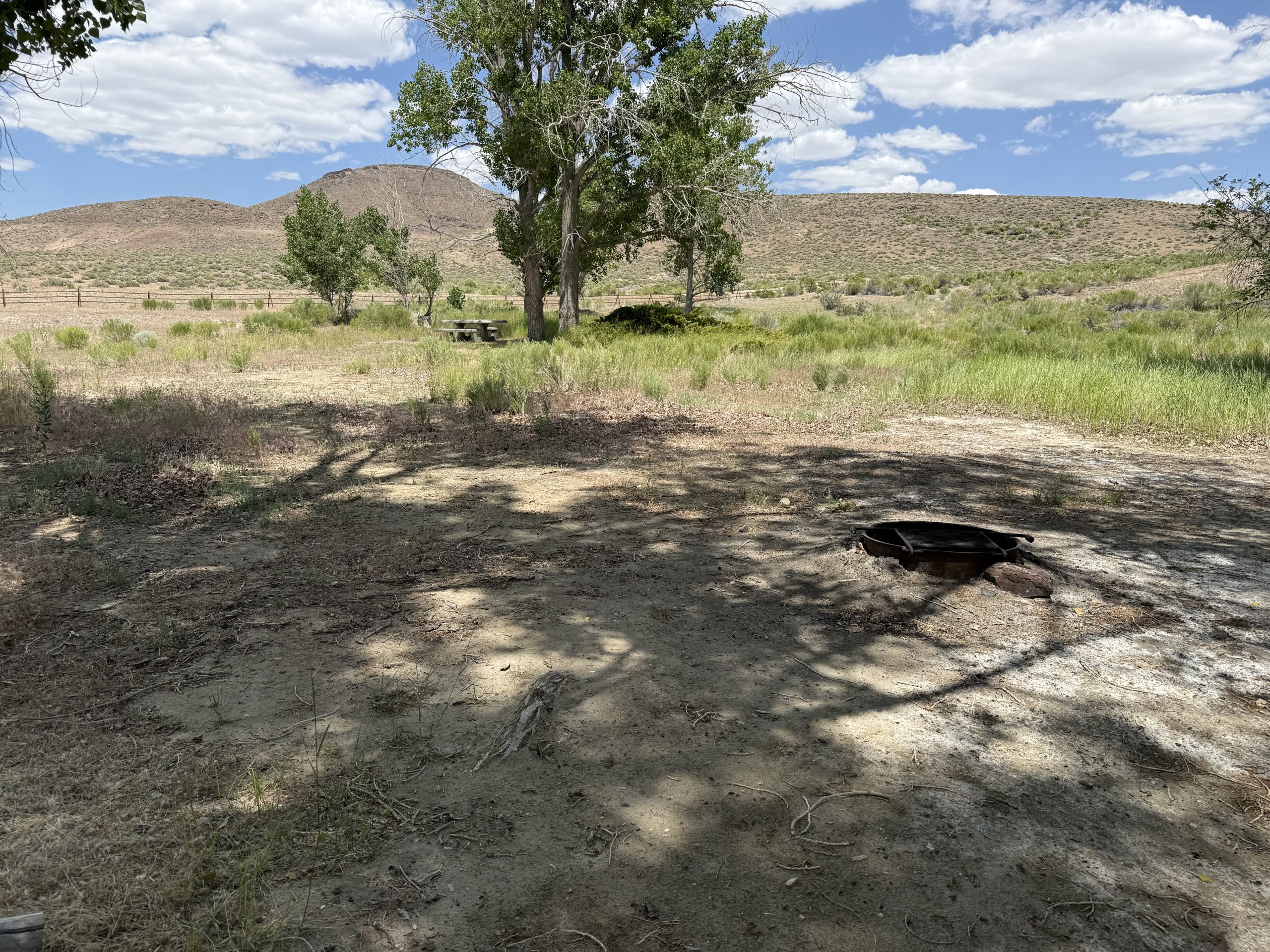 A fence has been installed around the main part of the recreation area in order to protect the rich riparian habitat and shade trees that make this area an oasis in the desert. There are picnic tables and fire rings within the fenced area and walk-in tent camping is allowed.